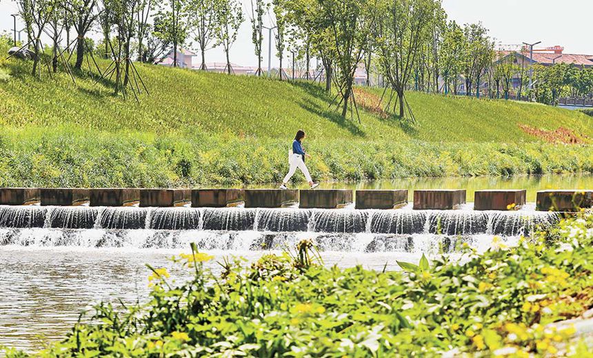 河水清澈,花香撲鼻,4月20日,西部(重慶)科學(xué)城梁灘河兩岸,吸引了市民前來游玩。