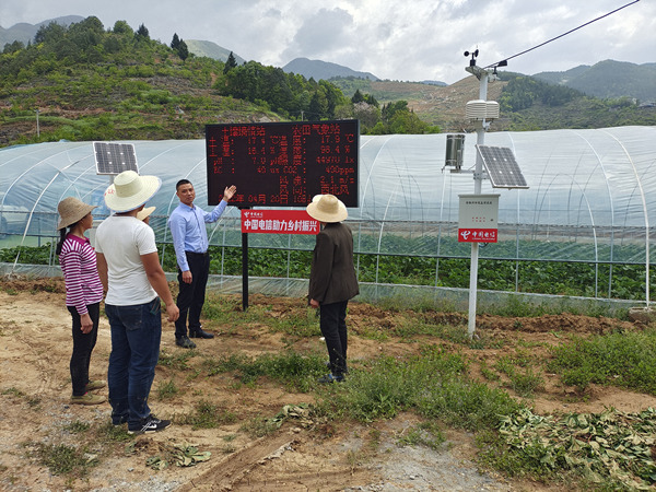 在離他家不遠的草莓園外,也已經(jīng)安裝了土壤墑情站、農(nóng)田氣象站,村民可從顯示屏上查看溫度、溫度、風(fēng)向,根據(jù)專家提示和通過手機查閱安排農(nóng)事。