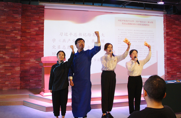 四川外國語大學(xué)青年黨史故事講演團宣講紅色故事。沙坪壩區(qū)委宣傳部供圖