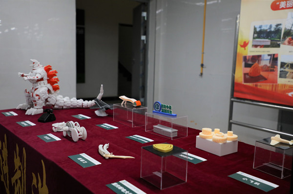 陳前斌現(xiàn)場為學(xué)生們發(fā)放了勞動工具,師生代表在綜合實驗樓草坪參加了現(xiàn)場勞動實踐活動。在綜合實驗樓里,先進制造學(xué)院的同學(xué)們通過金工實習(xí)課程積極開展生產(chǎn)實踐勞動,現(xiàn)場展出了同學(xué)們采用釘子繞線制作的“南湖紅船”等手工作品,3D打印的校門、搖把子電話雕塑等學(xué)校標志性景觀模型。