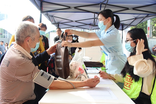 “嬢孃,你這個(gè)血壓有點(diǎn)高哦,平時(shí)還是要多注意一下?!薄澳阌羞@種情況的話說明可能有胃炎了,最好后面去醫(yī)院檢查一下?!被顒?dòng)現(xiàn)場(chǎng),工作人員仔細(xì)回答市民們的健康咨詢。