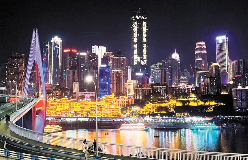 4月23日晚上8點,一場盛大的全民閱讀主題城市亮燈活動,在重慶大劇院、江北嘴、觀音橋商圈、解放碑商圈等市內(nèi)主要地標建筑集體亮相,不少市民駐足觀看。據(jù)了解,亮燈活動將持續(xù)到25日。