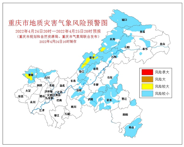 4月24日16時,重慶市規(guī)劃和自然資源局、重慶市氣象局聯(lián)合發(fā)布全市地質(zhì)災(zāi)害氣象風(fēng)險預(yù)警。