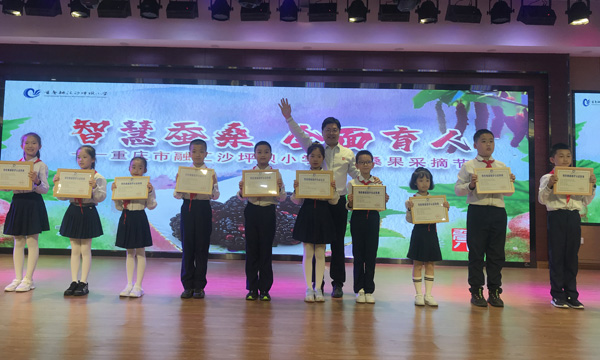 校長郭先富頒發(fā)“特色果桑管護認證執(zhí)照”。融匯沙坪壩小學供圖