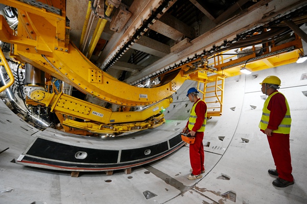 15號(hào)線一期工程復(fù)盛站至現(xiàn)代大道站,TBM區(qū)間左線完成盾構(gòu)百環(huán)驗(yàn)收。鄒樂(lè)攝