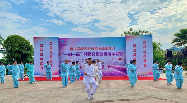 4月25日下午,在重慶高新區(qū)走馬鎮(zhèn)花園水庫健身廣場,軍鼓、威風(fēng)鑼鼓、舞龍、舞獅、柔力球、太極拳、太極劍、廣場舞、交誼舞等精彩表演輪番上演。由走馬鎮(zhèn)綜合文化服務(wù)中心、村(居)綜合文化服務(wù)中心聯(lián)合承辦的“全民健身月”健身團隊展示活動正在舉行。