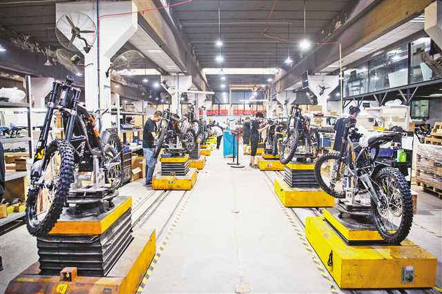 4月24日,在位于重慶市大渡口區(qū)文創(chuàng)產(chǎn)業(yè)園的重慶虬龍科技有限公司,工人在生產(chǎn)車間忙碌。該企業(yè)是一家主要研發(fā)生產(chǎn)電動越野摩托的新興企業(yè)。目前當(dāng)?shù)卣c該企業(yè)聯(lián)合打造的蜂窩壩越野場,不僅是旅游休閑新項目,還能助力企業(yè)在重慶及周邊地區(qū)培養(yǎng)電動越野摩托的消費群體。