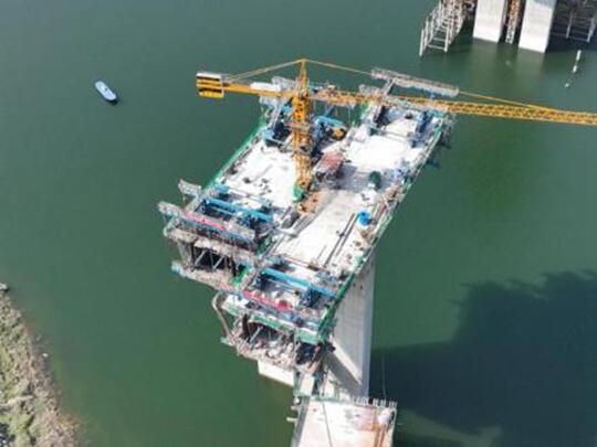 東溪河大橋主橋掛籃懸臂澆筑施工現(xiàn)場。中建路橋集團(tuán)供圖