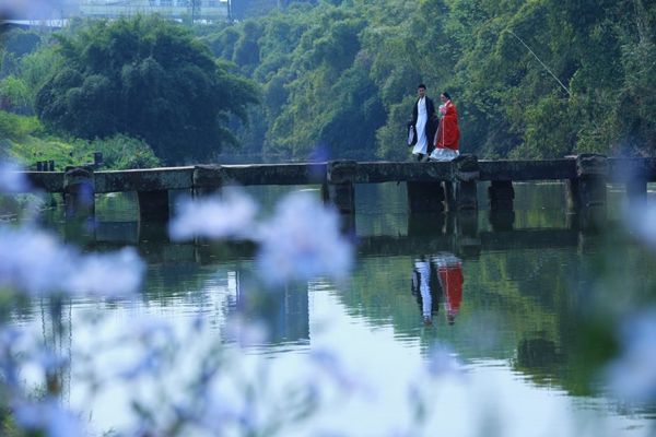 在陶家鎮(zhèn)大溪河兩岸,有清棲谷漢韻文化景區(qū),以漢韻、國風(fēng)為主題。每年這個季節(jié),菜園里菜苗青翠欲滴,翠堤垂柳吐綠,柳下繁花似錦,九龍十孔的古橋下溪水潺潺,古琴、古箏曲在谷畔悠揚(yáng)。有不少市民著漢裝、飲春茶、聽箏曲,在茵茵草地上蕩秋千,池旁垂下釣竿。