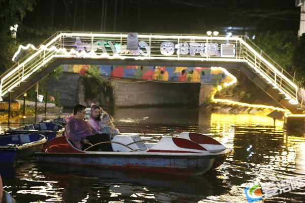 當晚的春雨給夜色蒙上一層神秘的面紗。乘上一艘腳踏船,水波蕩漾間,處處都是流光溢彩的美景。游客在游覽時既有現(xiàn)代都市的霓虹璀璨,又有鄉(xiāng)間田園的漁舟唱晚,一步一景,尤其是特色水上景觀長廊,增加了夜景燈光設計,在夜間游覽時有不一樣的槳聲燈影體驗。
