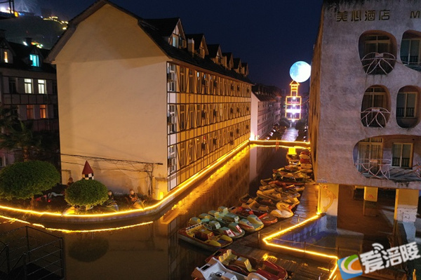據(jù)悉,這條人工運河于2009年景區(qū)建設之初修建,一直以來都是游客喜愛的觀光體驗項目。河道總長5公里多,穿過景區(qū)大半個區(qū)域,運河途經美心酒店、饅頭坊、水上樂園、鵲橋、亂吼一條街、蹦極等景點,因景區(qū)的山體地形,這條運河時而在半空中,時而在山腰處,時而又在巖洞中,不僅穿過樓房,還穿過一條鐵路和公路,沿途景色千變萬化。