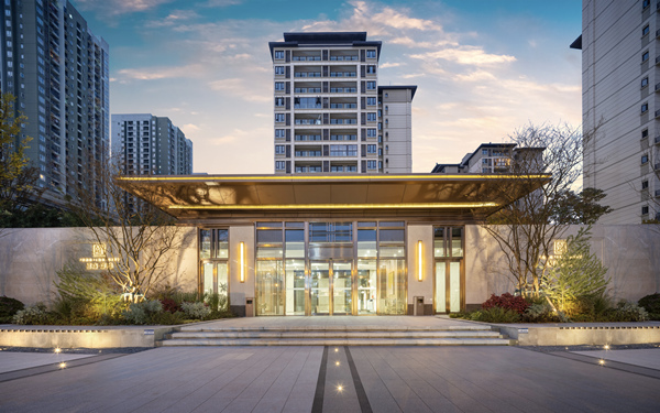 步入招商雍璟城小區(qū)大門口,20米寬的酒店式大堂設計、利落的線條切割和精致昭示性的logo彰顯出業(yè)主歸家的儀式感和品質(zhì)感。
