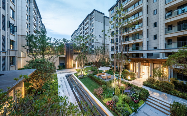在此次交付的“洋房詩意棲居”公共空間,根據(jù)建筑排布,特別打造了“六庭四院兩巷”多主題景觀。其中六庭包括裳華庭、見山庭、攸寧庭、攬月庭、聽溪庭、拾野庭,風格各異。四院即春生院、夏長院、秋收院、冬藏院,根據(jù)不同季節(jié)搭配相應植被。兩巷則是連接六庭、四院的百花巷和聞芳巷,讓整個園區(qū)的景觀呈現(xiàn)更加連貫而豐富。