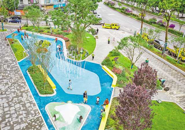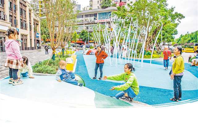 ▲4月28日,大渡口區(qū)百花村街頭小游園,市民帶著孩子開(kāi)心玩耍。近年來(lái),我市建設(shè)了不少口袋公園,截至4月底,僅中心城區(qū)就建成口袋公園50余個(gè)。