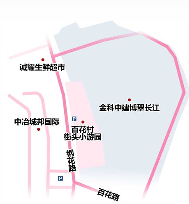 百花村街頭小游園位于鋼花路東側(cè),金科博翠長(zhǎng)江小區(qū)西側(cè),面積約3000平方米。記者注意到,這是一個(gè)帶狀的口袋公園,小而精致。公園內(nèi)植被郁郁蔥蔥,健身步道柔軟舒適,休閑座椅、兒童游樂(lè)設(shè)施也一應(yīng)俱全。