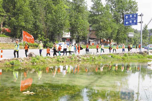 “五一”假期,忠縣布澤學校伏羲班組織小學生親子徒步研學隊,步行108公里從忠縣經(jīng)豐都前往涪陵816核工業(yè)基地參觀采訪。圖為孩子們在徒步中。通訊員 曾素芳 馮曉鋒 攝影報道/視覺重慶