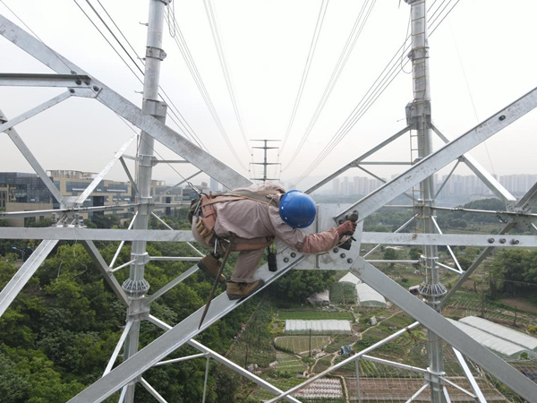 國網(wǎng)重慶市南供電公司工作人員正在進行新塔的組建工作。龔超攝