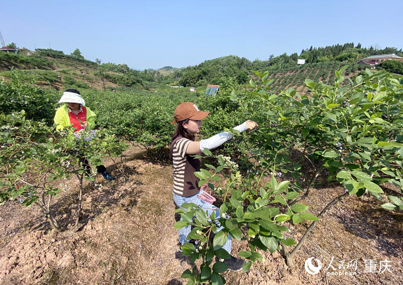 人民網(wǎng)重慶5月8日電 (劉政寧)“今年的藍(lán)莓口感特別好,甜味十足,自己在果園采摘別有一番風(fēng)味!5月8日上午,在位于重慶渝北區(qū)石船鎮(zhèn)的普吉灣藍(lán)莓莊園,正忙于采摘的王女士開心地說道。進(jìn)入5月,普吉灣藍(lán)莓莊園的300畝藍(lán)莓陸續(xù)成熟,趁著周末,不少市民帶著孩子穿梭其中,盡情享受鄉(xiāng)村采摘的樂趣。