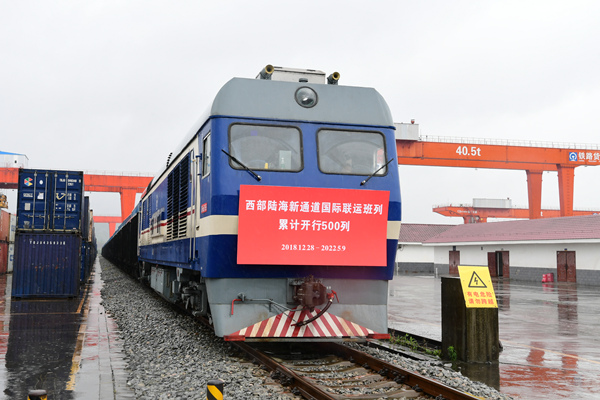 西部陸海新通道國際聯(lián)運(yùn)班列累計(jì)開行500列。蘇盛宇攝