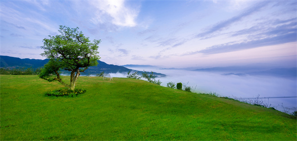 晨霧總是自烏江而上,很快就讓整個(gè)星光草坪宛如置身仙境。草坪上這棵年逾七旬的山楂樹,象征著純愛、智慧、能量和守望,是詮釋816精神的守護(hù)之樹、自然之樹和人性之樹。白濤街道供圖