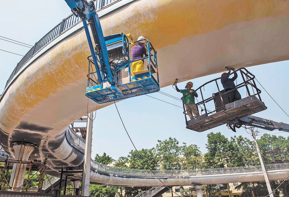 南渝中學(xué)人行天橋所在路口周邊住宅小區(qū)、學(xué)校、超市集中,為消除行人過街安全隱患,該項目于去年9月動工,預(yù)計下月建成投用。