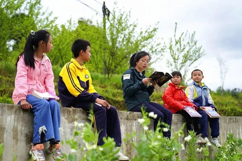 石柱縣橋頭鎮(zhèn),鄉(xiāng)助閱讀中心志愿者帶領(lǐng)鄉(xiāng)村青少年開展自然耕讀課堂。(資料圖) 重慶陸海國際傳播公益基金會供圖