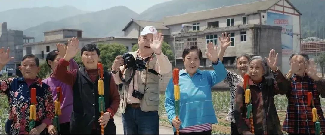 公益攝影師馮爽和村民一起拍照。 騰訊供圖