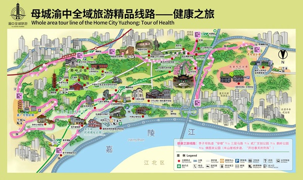日前,渝中區(qū)文化旅游委推出《母城渝中全域旅游精品線路—健康之旅》,該線路主線全長約7公里,貫通了李子壩抗戰(zhàn)遺址公園、“穿樓”軌道交通李子壩站、三層馬路、貳廠文創(chuàng)公園、鵝嶺公園和佛圖關(guān)公園、半山崖線步道等30余個(gè)特色景點(diǎn)。