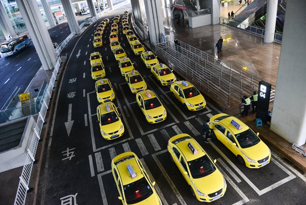 江北機(jī)場T3航站樓出租車自動(dòng)排隊(duì)。鄒樂攝