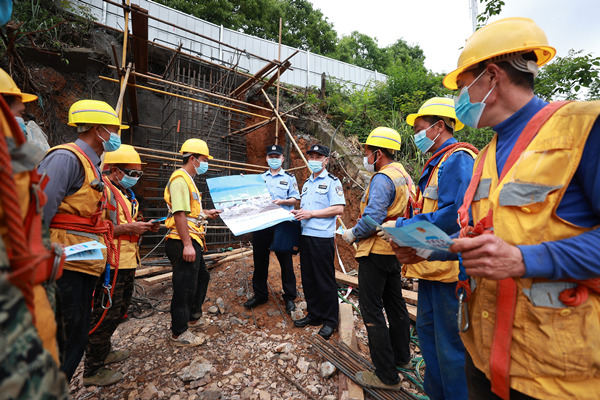 在開展防災(zāi)減災(zāi)專題宣傳活動(dòng)期間,民警還結(jié)合日常安全檢查,對(duì)施工現(xiàn)場(chǎng)安全防護(hù)措施,應(yīng)急物資儲(chǔ)備等開展了一輪專項(xiàng)隱患排查治理,幫助企業(yè)從源頭上“把脈問診”、消除風(fēng)險(xiǎn)。并督促指導(dǎo)企業(yè)加強(qiáng)應(yīng)急能力建設(shè),尤其是應(yīng)對(duì)夏季暴雨、雷電、泥石流等突發(fā)自然災(zāi)害的應(yīng)急處置能力,構(gòu)建多元防災(zāi)減災(zāi)工作格局。同時(shí),民警還針對(duì)防范電信網(wǎng)絡(luò)詐騙、保障鐵路安全等內(nèi)容進(jìn)行了集中宣講。(劉政寧、胡勇)
