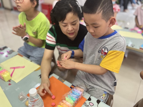 講座之后,兒童軟陶DIY活動(dòng)開(kāi)啟,重慶普瑞眼科醫(yī)院工作人員及七星崗街道社區(qū)教育輔導(dǎo)員雷敏帶領(lǐng)孩子與家長(zhǎng)共同參與陶藝制作。