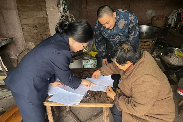 璧山區(qū)稅務(wù)局工作人員上門為七塘鎮(zhèn)建設(shè)村村民唐孝芬辦理農(nóng)房贈(zèng)與涉稅交易相關(guān)手續(xù)。彭彥銘攝