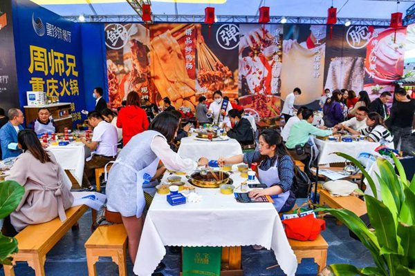 市民在重慶火鍋節(jié)現(xiàn)場品嘗火鍋。(資料圖) 鄒樂攝