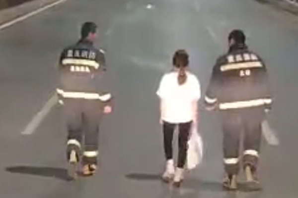 臨別之際,女孩表示認(rèn)識(shí)到了在公路中間“漫步”存在極大的安全隱患,以后再也不沖動(dòng)行事。(張勇)