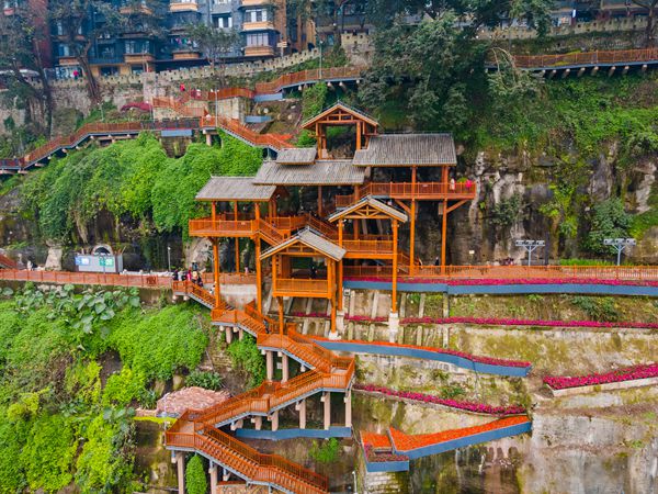 答案是:以前,重慶人用腳步丈量梯坎;現(xiàn)在,重慶用步道串聯(lián)梯坎。所謂“輕功”,即是這些建在懸崖上、巖壁上乃至文化古跡上的步道,讓市民與游客在不經(jīng)意間就能“飛檐走壁”,覽盡山城之美。