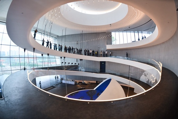 “構(gòu)象方寸、筑夢(mèng)金灘”,構(gòu)象臺(tái)名稱取自南北朝著名詩(shī)人江淹的《雜三言 構(gòu)象臺(tái)》一詩(shī)。構(gòu)象臺(tái)位于長(zhǎng)江與嘉陵江交匯下游約6公里,寸灘國(guó)際郵輪母港東側(cè)臺(tái)地,占地面積1470平方米,建筑面積4860平方米,高23.8米。項(xiàng)目分三層,一層為寸灘片區(qū)歷史文化和寸灘國(guó)際新城規(guī)劃展示區(qū),二層為沉浸式體驗(yàn)區(qū),三層為多功能廳。各區(qū)域充分運(yùn)用聲、光、電、機(jī)械、數(shù)碼、信息、多媒體和網(wǎng)絡(luò)等手段,并巧妙設(shè)計(jì)獨(dú)特的螺旋坡道,營(yíng)造獨(dú)特的參觀體驗(yàn)。