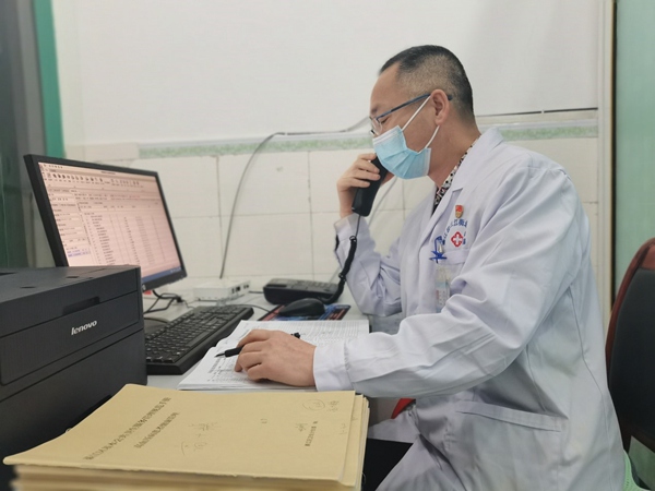 對(duì)居民進(jìn)行電話(huà)隨訪(fǎng)。綦江區(qū)衛(wèi)健委供圖