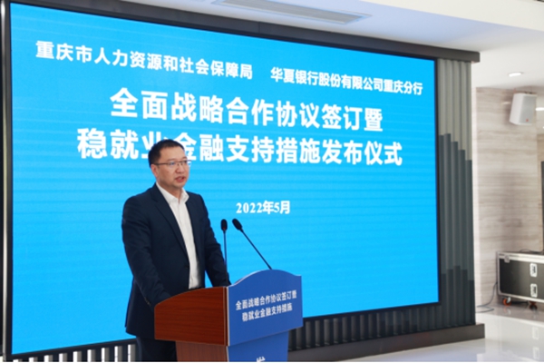 為凝聚政銀合力,推動落實金融支持穩(wěn)企業(yè)保就業(yè)工作,5月20日,重慶市人力社保局和華夏銀行重慶分行舉行全面戰(zhàn)略合作協(xié)議簽約儀式,依托各自優(yōu)勢,進一步提高合作層次、創(chuàng)新合作方式、拓寬合作領(lǐng)域,發(fā)布穩(wěn)就業(yè)促就業(yè)專項金融支持等措施,撬動社會資本支持“穩(wěn)就業(yè)”“保居民就業(yè)”。