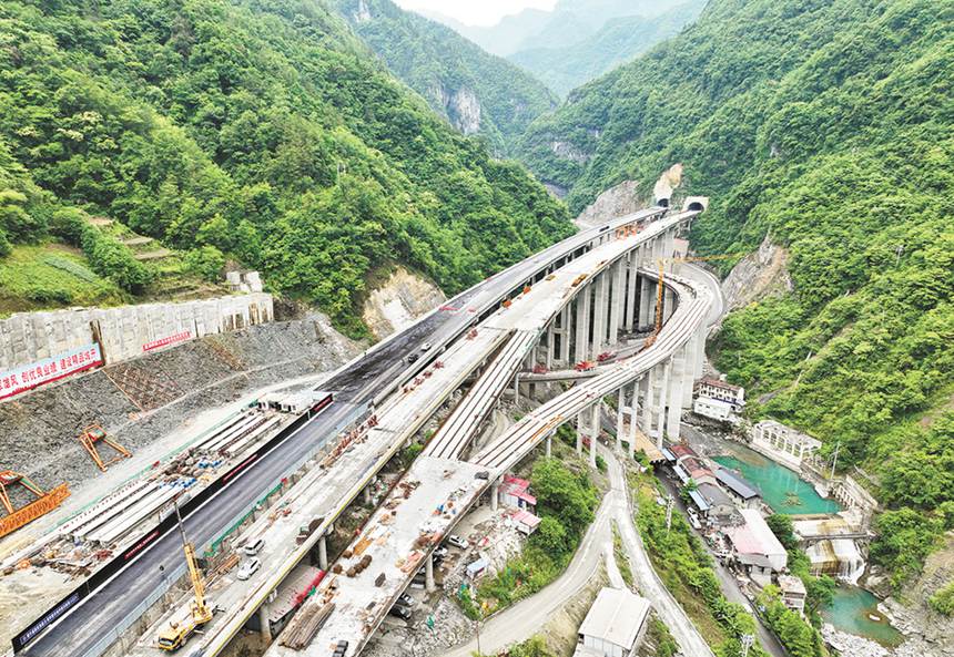 5月22日,城開高速雪寶山立交主體進(jìn)入收尾階段。記者 羅斌 攝\視覺重慶