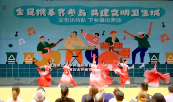 5月25日,巴南區(qū)姜家鎮(zhèn)文化服務(wù)小分隊創(chuàng)衛(wèi)演出,走進(jìn)姜家社區(qū)和白云山村,將創(chuàng)衛(wèi)宣傳節(jié)目送到了村民的家門口。