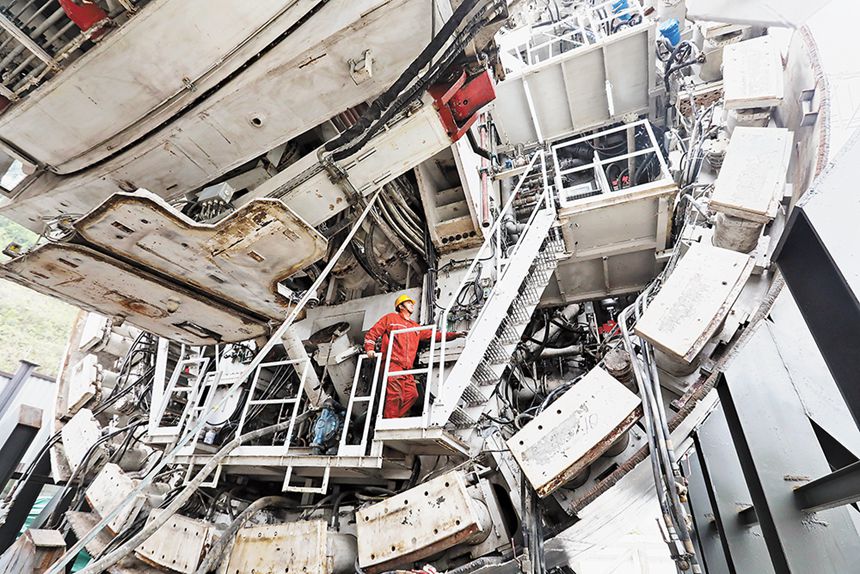 5月24日,中鐵十四局的技術(shù)人員正在進(jìn)行盾構(gòu)機(jī)的調(diào)試工作。該盾構(gòu)機(jī)長(zhǎng)146米,重4200噸,屬于盾構(gòu)機(jī)中的“巨無霸”,調(diào)試完成后將投入渝湘高鐵長(zhǎng)江隧道掘進(jìn)施工。