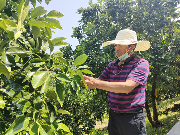 果農(nóng)正在查看柚樹。梁平區(qū)委宣傳部供圖