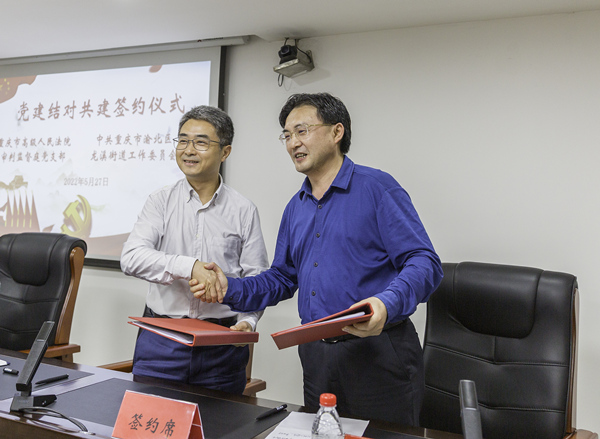 人民網(wǎng)重慶5月29日電 為進(jìn)一步探索創(chuàng)新基層黨建工作,實(shí)現(xiàn)黨建引領(lǐng)基層服務(wù)管理與法治政府建設(shè)工作的有效融合,5月27日,重慶市高級(jí)人民法院審判監(jiān)督庭黨支部與重慶市渝北區(qū)龍溪街道黨工委共同舉行“黨建結(jié)對(duì)共建”簽約儀式。