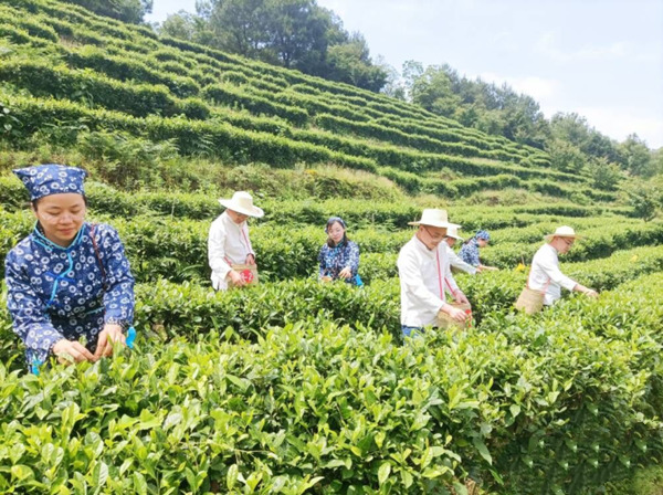 學員到荔枝街道方坪村茶園助農(nóng)采茶。涪陵區(qū)委黨校供圖
