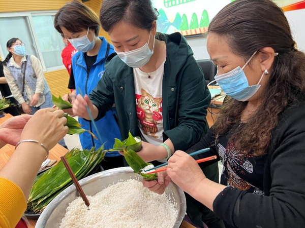黨員群眾現(xiàn)場包粽子。余松路社區(qū)供圖