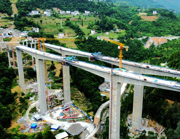 5月31日,巫(溪)鎮(zhèn)(坪)高速三叉溪大橋右幅中跨130米連續(xù)剛構(gòu)順利合龍,這也是巫鎮(zhèn)高速首座合龍的連續(xù)剛構(gòu)現(xiàn)澆橋梁。