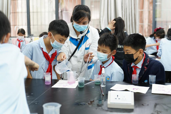 “炫彩魔法”科普講座。重慶工業(yè)職業(yè)技術(shù)學(xué)院供圖