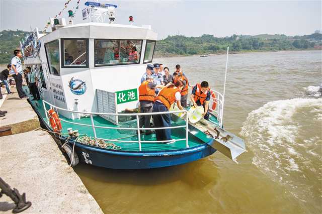 當天上午,記者在江津區(qū)濱江路米幫沱碼頭看到,江邊?恐凰野咨≥喆^設有“馴化池”,船身印著“保護珍稀特有魚類”幾個大字。原來,這就是由江津區(qū)法院、市珍稀特有魚類國家級自然保護區(qū)管理處、江津區(qū)林業(yè)局共同建設的收容救護中心。