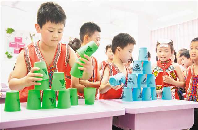 5月31日,江北區(qū)玉帶山小學(xué),孩子們身著民族服裝,參加“各族兒童心向黨、科技藝術(shù)筑夢(mèng)想”飛疊杯比賽。記者 崔力 見習(xí)記者 劉旖旎 攝/視覺重慶