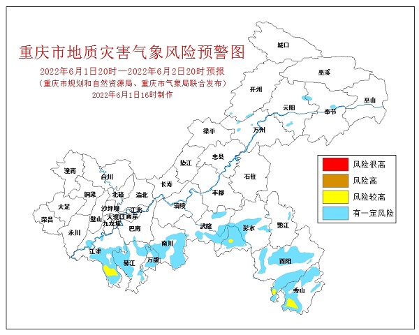 6月1日,重慶市規(guī)劃和自然資源局、重慶市氣象局聯(lián)合發(fā)布全市地質(zhì)災(zāi)害氣象風(fēng)險預(yù)警。
